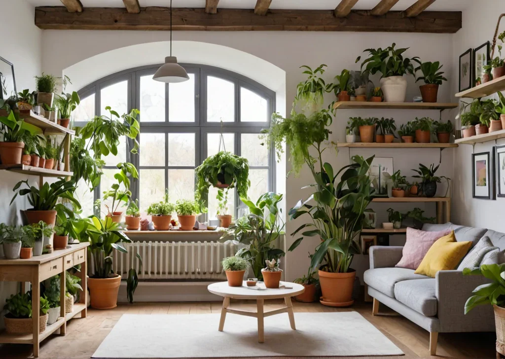 You can also incorporate natural materials like bamboo furniture, jute rugs, or wooden shelves to complement the greenery.