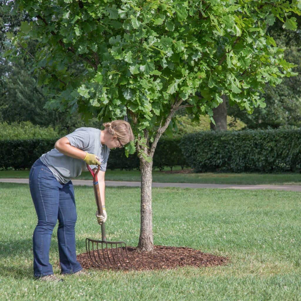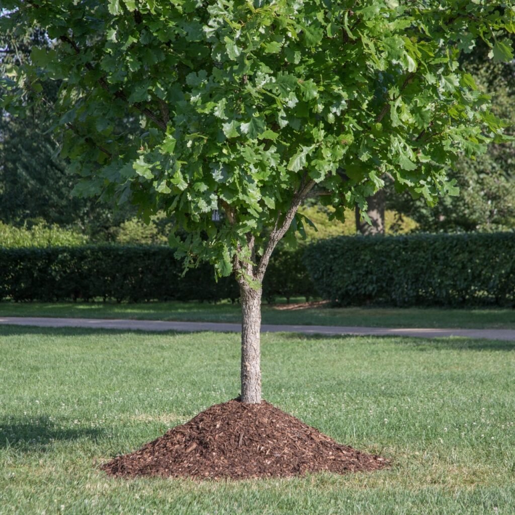 • How to Apply: Spread a 2–4 inch layer around the base of the tree, keeping mulch 2–3 inches away from the trunk to prevent rot.