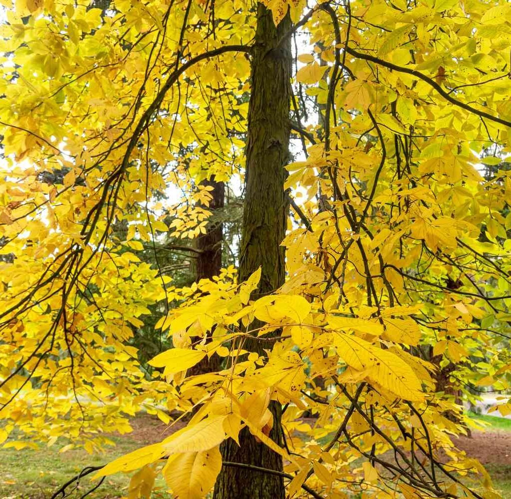 Known as a “living fossil,” the Ginkgo is one of the oldest tree species in the world, dating back over 200 million years. In fall, it undergoes a stunning transformation, turning its fan-shaped leaves into a sea of radiant gold.