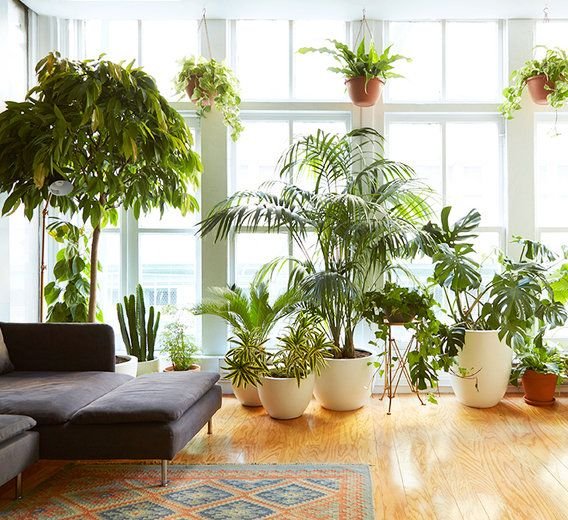 • Indoor jungle corner: Combine a tall fiddle leaf fig, mid-sized ferns, and trailing pothos for a lush corner display.
