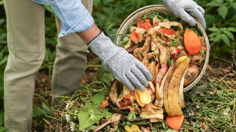 2. Add vegetable peels, banana skins, and coffee grounds.