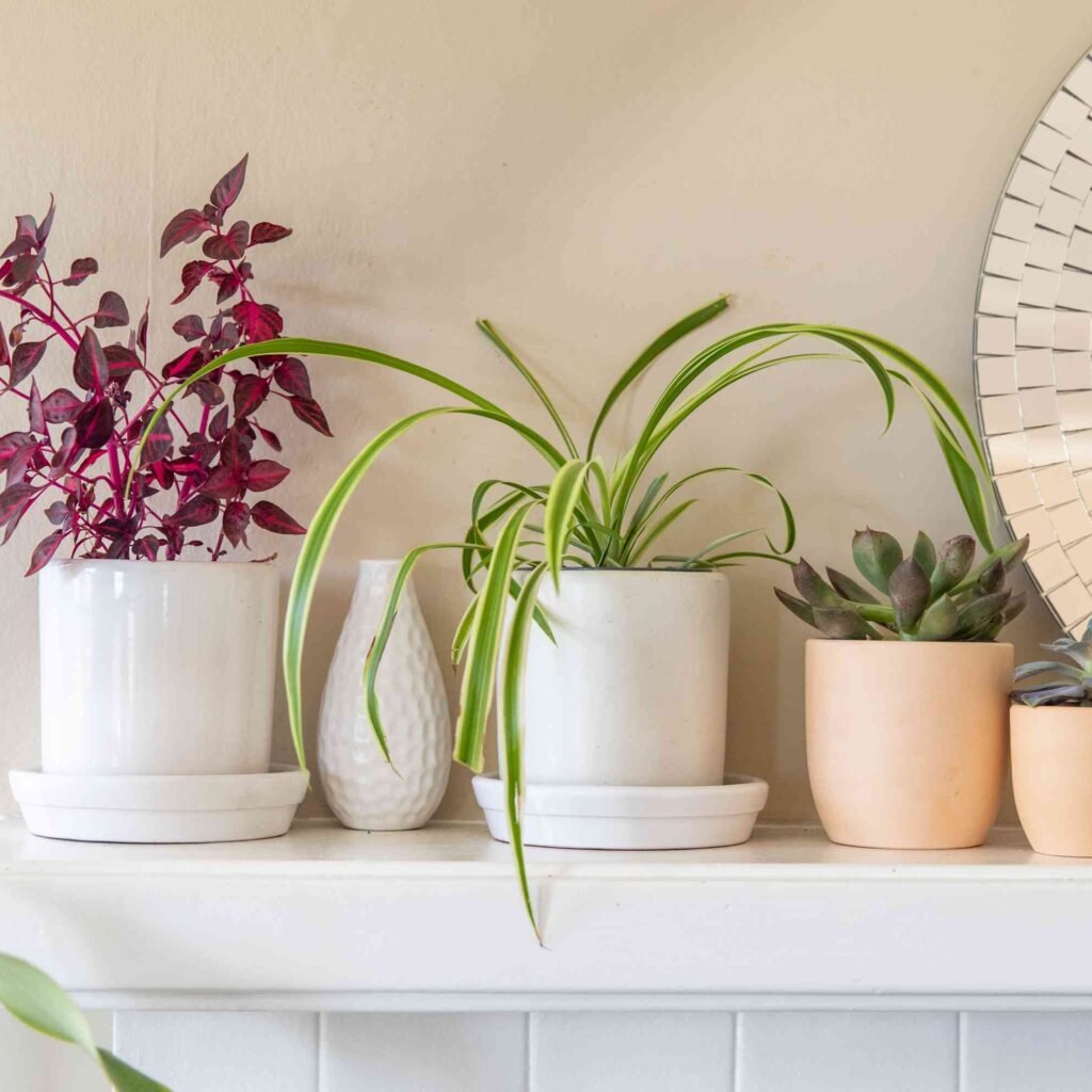 - Try pairing Pothos, Spider Plant, Begonia Rex, and Tradescantia in contrasting containers.