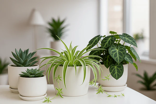 Spider Plants are famous for their arching green-and-white striped leaves and their ability to thrive in neglectful conditions. They’re highly adaptable, forgiving of missed waterings, and even help purify indoor air.